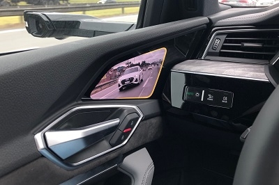 No painel e no console central estão os dois displays do MMI Touch, de 10,1 e 8,6 polegadas. Pelo superior, é possível controlar informações, entretenimento e navegação. No inferior, gerencia-se entrada de texto, funções de conforto e ar-condicionado. Com o opcional de retrovisores com câmeras, as imagens capturadas aparecem em displays posicionados entre o painel de instrumentos e a porta. Se o motorista mover o dedo pela superfície do display sensível ao toque, são ativados símbolos que permitem reposicionar a imagem. Contudo, a localização das telas em que as imagens são reproduzidas é mais baixa em relação à dos retrovisores externos convencionais. Demora um pouco para se acostumar com isso.