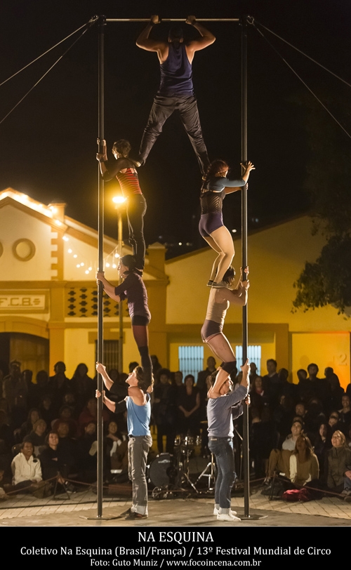 O coletivo artístico Na Esquina é um grupo composto por seis artistas brasileiros e uma artista francesa que se conheceram na Europa, quando aprimoravam sua formação profissional, que teve início na Spasso Escola Popular de Circo, a mais famosa e respeitada de Belo Horizonte. Com a extensa experiência dos artistas nas escolas de circo europeias e das vivências de criação e aprimoramento no Brasil, o grupo criou este espetáculo de circo contemporâneo, no qual a dança, circo, música e teatro se transformam em um único corpo.